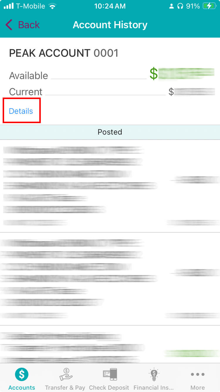 2: Select "Account Details.![]() | Step 3: When the account details are displayed, locate the routing number as the second item listed and account number as the third item listed.![]() |